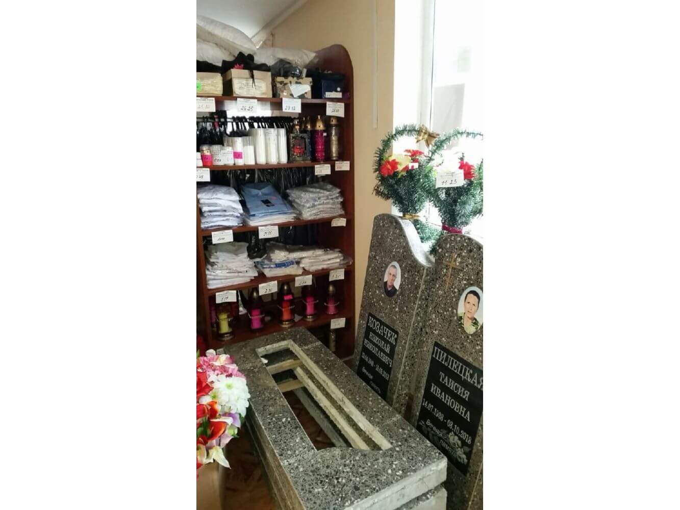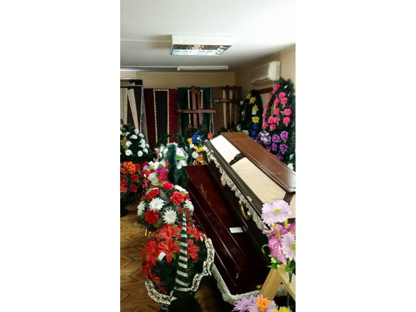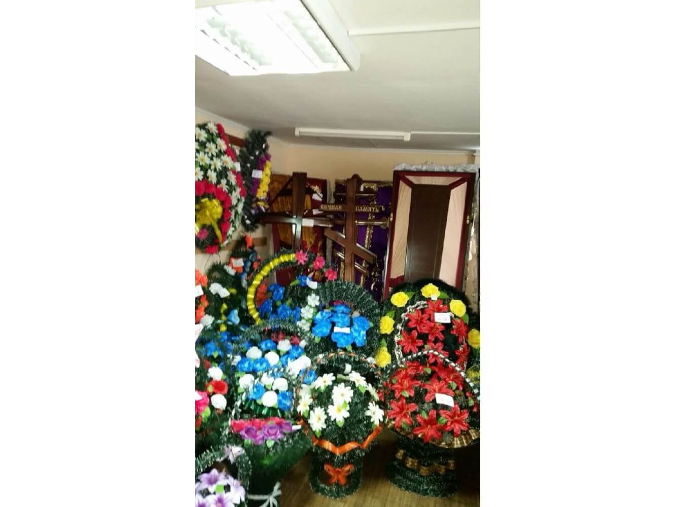 Ритуальные товары: венки, гробы, кресты, лампадки, венки, корзины, одежда для усопших, сопутствующие принадлежности для похорон.